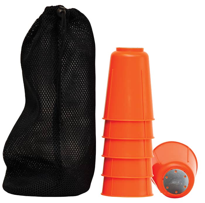 Contains 5 – 36″ safety cones. Each has an 8 lb. weighted rubber base and collapses for storage in a car trunk, utility truck, or toolbox.